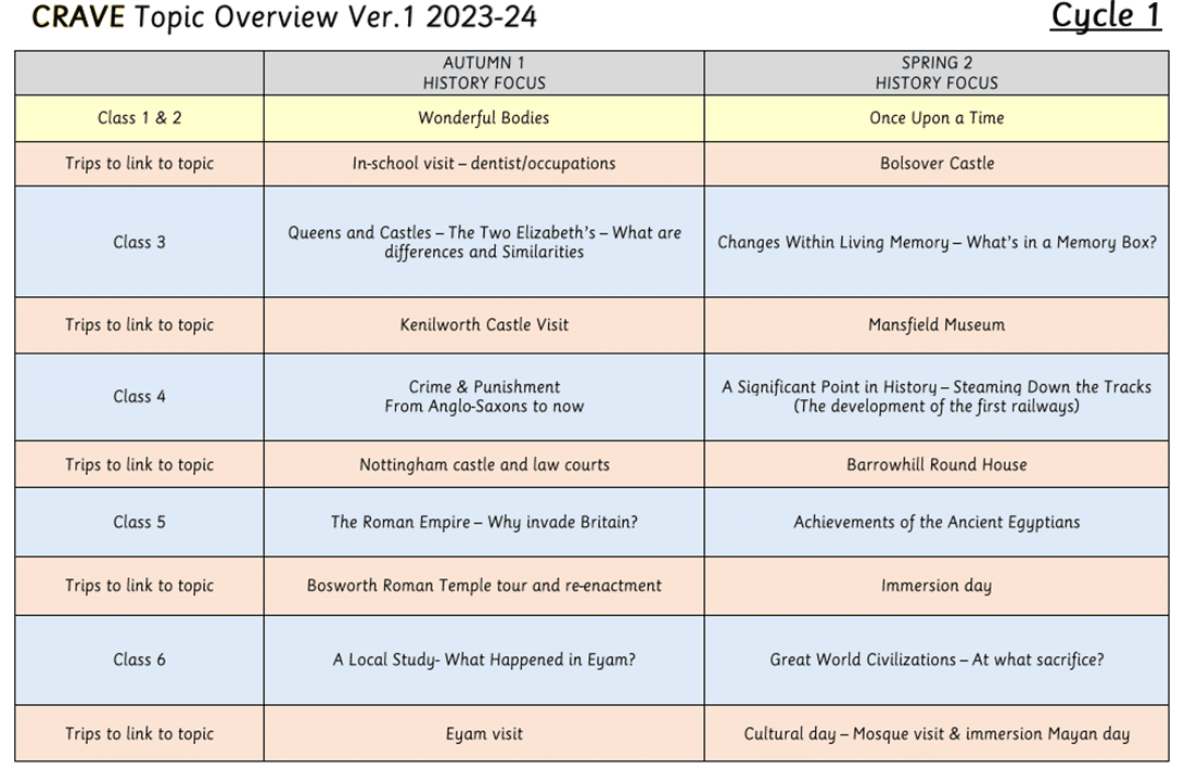 - Our CRAVE curriculum has a clear progression of skills, and history topics are planned so that children learn in a chronological sequence
